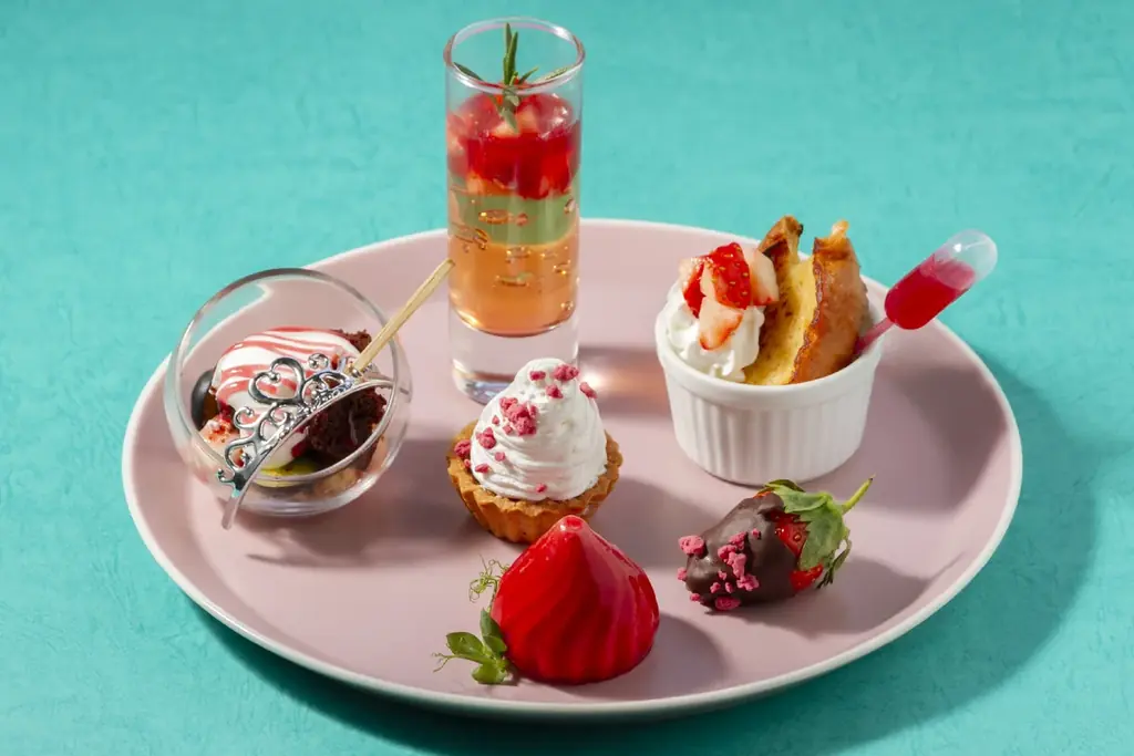 苺の甘酸っぱさを活かしたスイーツが揃います。見た目の色合いとフォルムにもこだわり、写真に残したくなる演出が施されています。