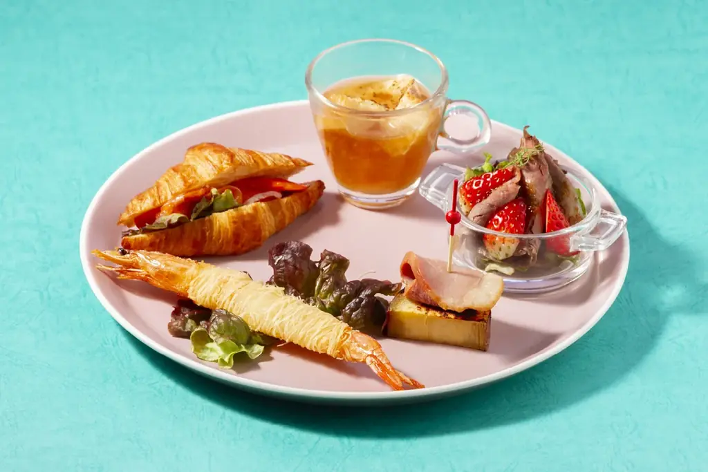 今回のアフタヌーンティーは、〈Sweets〉〈Savory〉〈Scone〉〈Drink〉の4つの要素で構成されています。各要素は苺の風味を軸に組み立てられており、視覚的な華やかさと味のコントラストに配慮してあります。