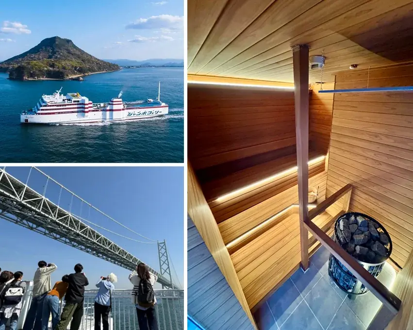 リニューアル初便は神戸13:00発の小豆島・高松行きとなり、航行中の船上で本場フィンランド式のロウリュ(サウナストーンに水をかけて蒸気を発生させる行為)を体験できます。船旅そのものの体験価値を高める取り組みとして実施されるものです。