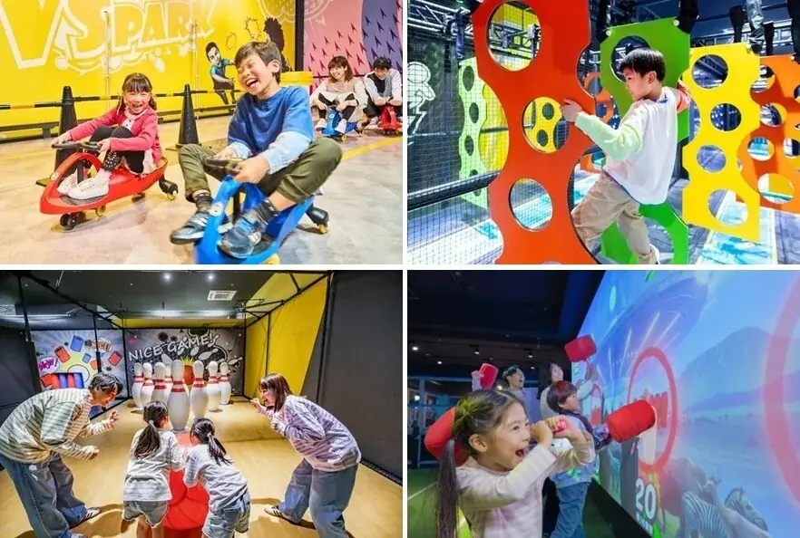 VS PARKは全国9店舗を展開する屋内型アクティビティ施設で、テレビのバラエティ番組のような体験ができることを特徴とするエンターテインメント型の遊び場です。小学生以上を対象に、雨天時や寒冷時など天候に左右されない遊び場として利用が見込まれます。