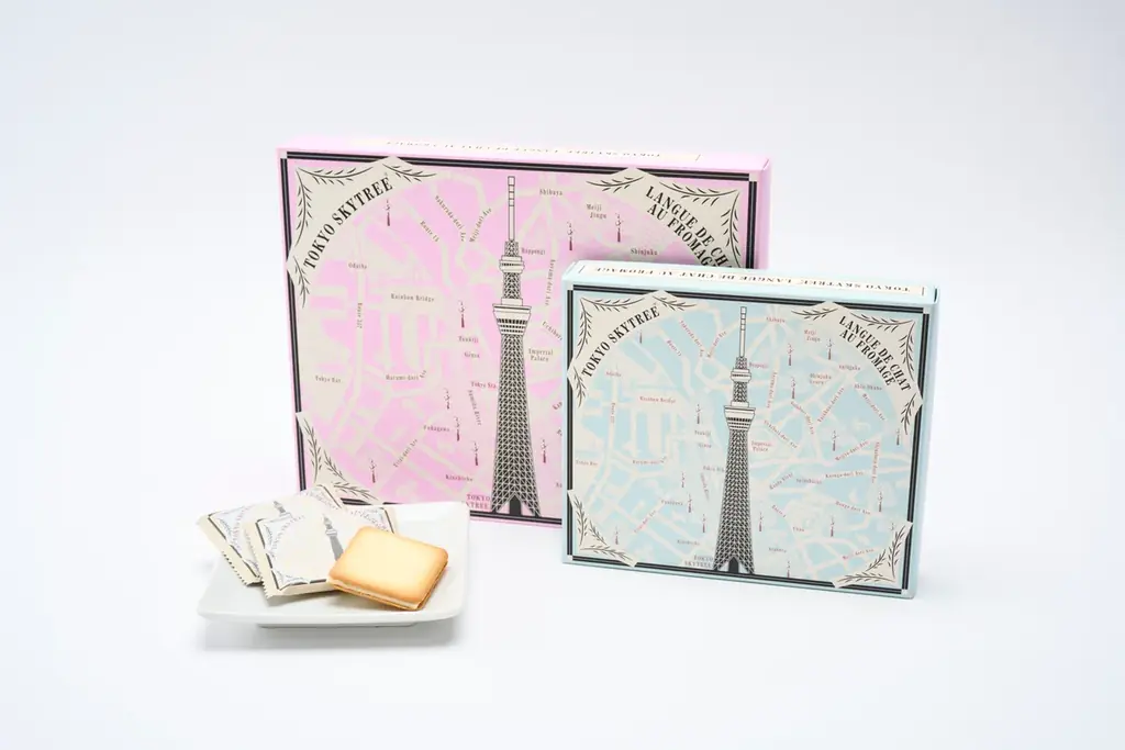 商品名: 「東京スカイツリーフロマージュサンド」 10枚入 ¥1,296 / 20枚入 ¥2,592