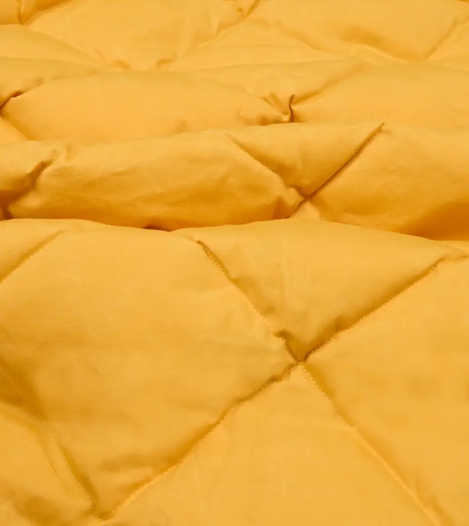 表地には柔らかく耐久性に優れた日本製コットン、裏地にはリサイクルナイロンを組み合わせたキルティング仕様です。かさばりを抑えつつもしっかりとした保温性を確保しています。