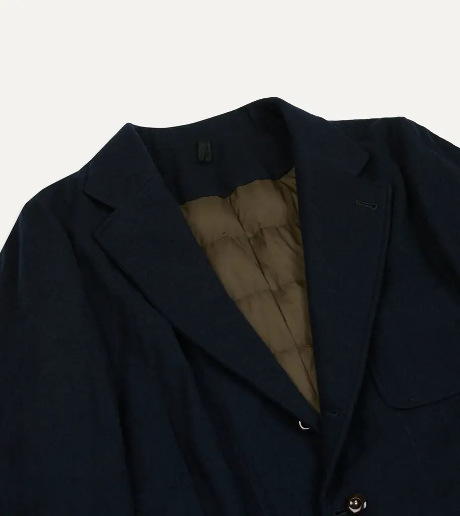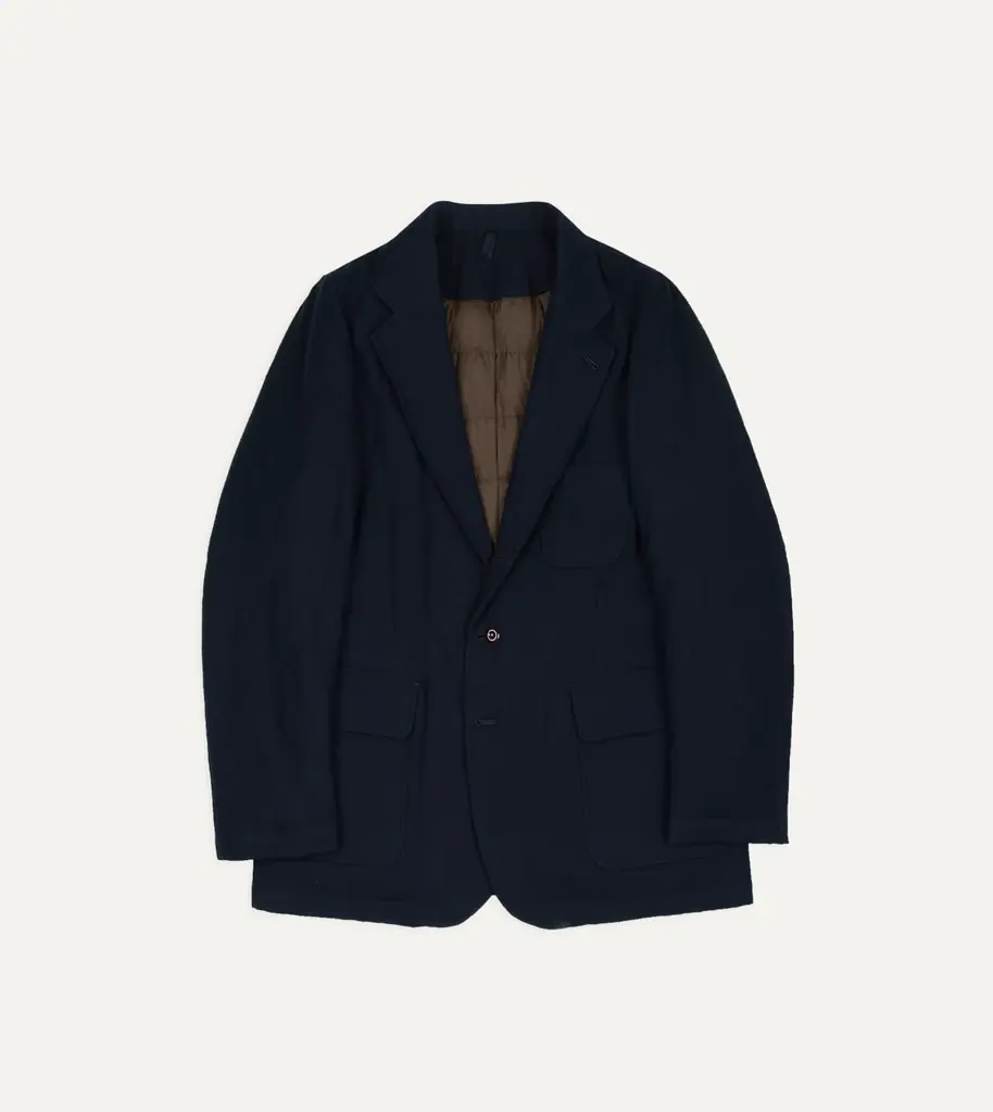 クラシックなブレザーの佇まいを保ちつつ、保温性や着心地を向上させるためのキルティング処理が施され、現代のライフスタイルに合わせた汎用性を目指しています。