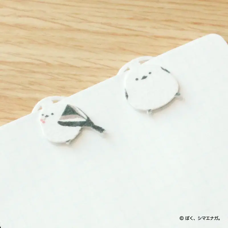 | ぼく、シマエナガ。まんまるペーパークリップ | もふもふ素材で手触りの良いペーパークリップ。書類の目印にも。 | 約W30×H30mm | 2種類 / 各3個入 | 紙 | 660円 |
