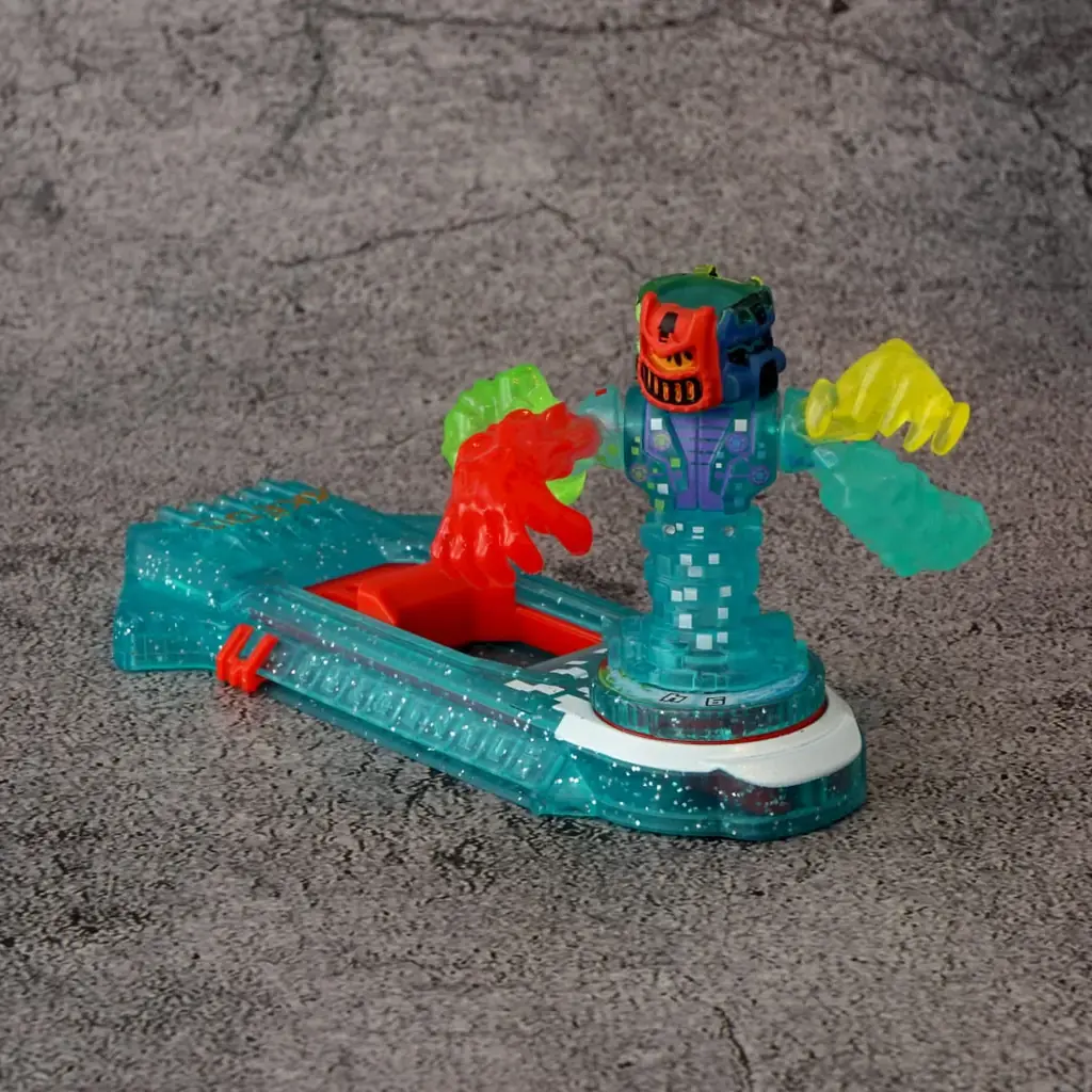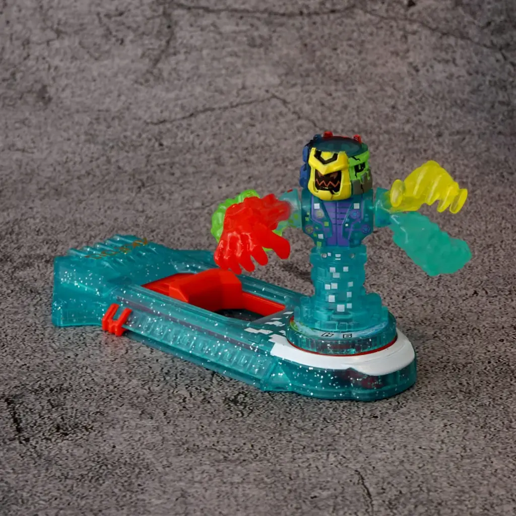 具体的には、炎・水・雷・大地の4属性を備え、4属性のパワーがみなぎる腕を高速回転させて強力な攻撃を放つと説明されています。加えて特殊ギミックにより頭部が回転して異なる表情へ変化する設計で、付属のコントローラーも限定カラー仕様となっています。