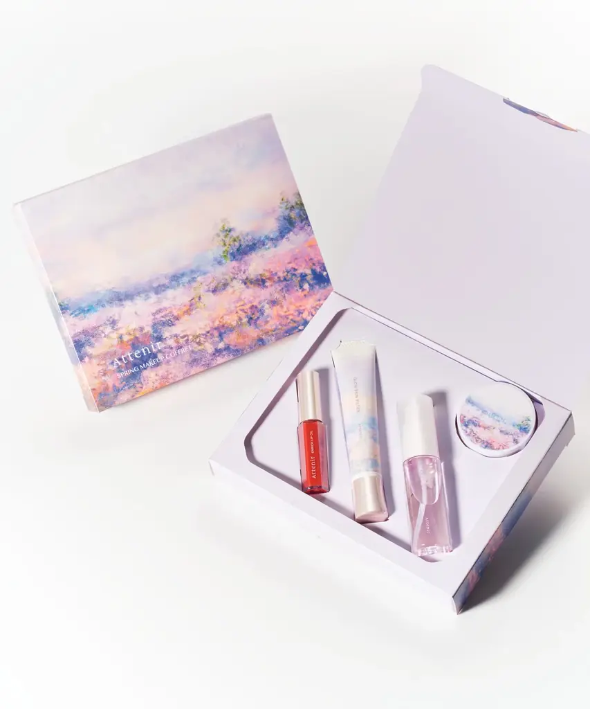 コフレは下地を中心に、コフレ限定色のミニルースパウダー、肌にツヤを与えるミスト、朝露のようなリップオイルの4品がセットになった内容です。いずれも持ち運びに便利なミニサイズを含み、春の装いに合わせた色調設計と機能面の配慮が特徴です。