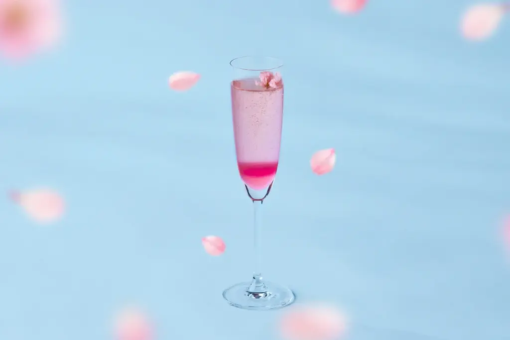 - SAKURAブロッサム — 1,210円(アルコールドリンク。桜シロップを忍ばせたグラスにスパークリングワイン等を注ぎ色が変化する演出。ノンアルコールも用意)