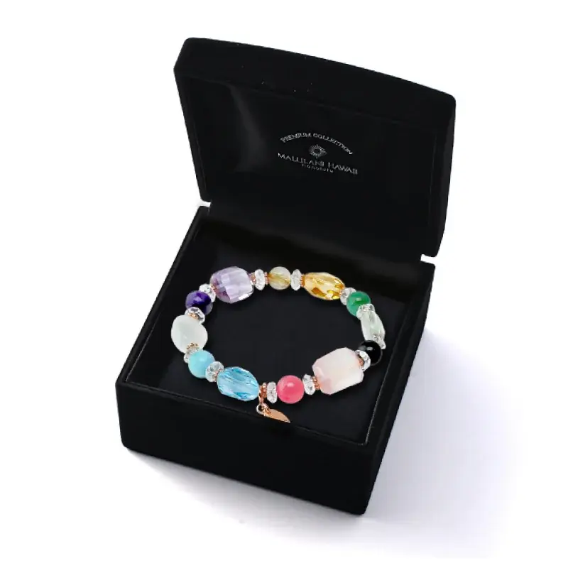 マルラニハワイの「プレミアム&ラグジュアリーコレクション」は、世界的に希少で最高級とされる天然石を厳選し、一本一本ハンドメイドで仕上げたブレスレットシリーズです。それぞれの石が持つ個性と輝きが、唯一無二の組み合わせを生み出す点が特徴です。