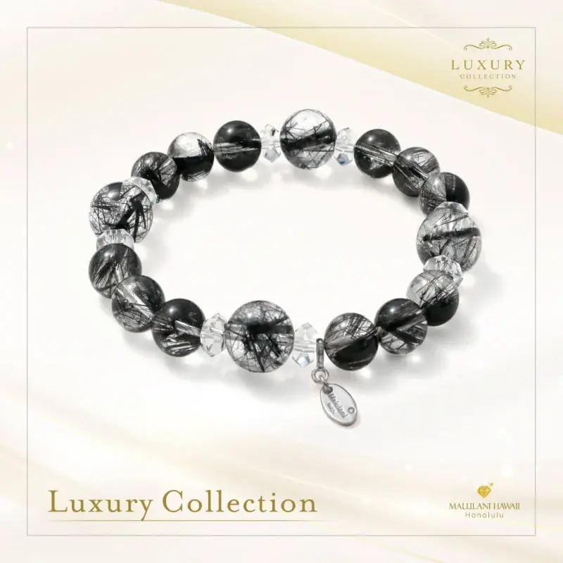 説明:一粒でも頼もしいエネルギーを放つ上質なブラックルチルをふんだんに使用したブレスレット。邪気を払って洞察力を高める性質があり、仕事運や運気の向上におすすめ。