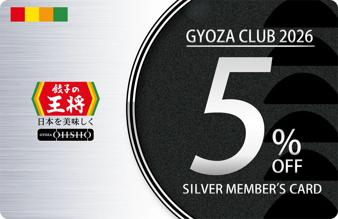 - スタンプ25個(初回):ぎょうざ倶楽部シルバー会員カード(お会計5%割引)+税込250円割引券 2枚