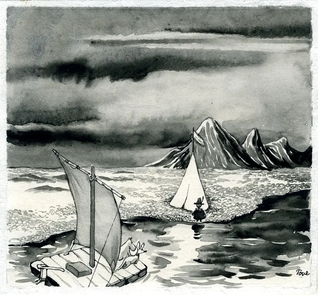 | 『ムーミン谷の彗星』挿絵 | 1946年 インク・水彩、紙 | ムーミンキャラクターズコレクション ©Moomin Characters™ |