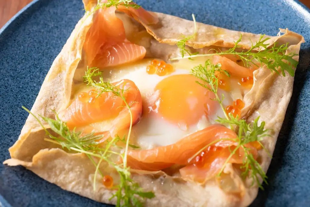 ガレットにはそば粉と乳製品が使用されています。料理の変更には対応できないため、そば粉や乳成分に対するアレルギーをお持ちの方は来店前にご注意ください。
