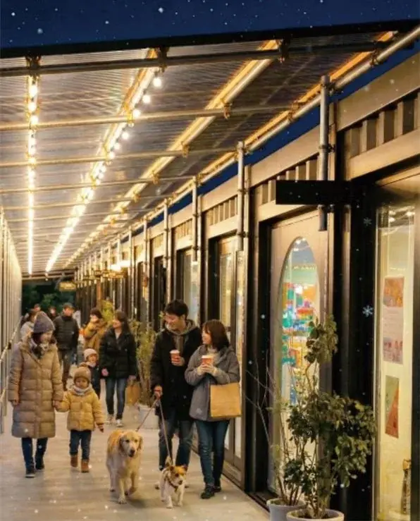 夜のWHATAWONは、暖かな灯りの下で買い物や屋台グルメを楽しめる夜限定のマーケット「YONAYONA MARKET」を軸に構成されています。通路があたたかい灯りで包まれる中、食べ歩きや写真撮影、立ち止まってくつろぐ時間が用意されます。