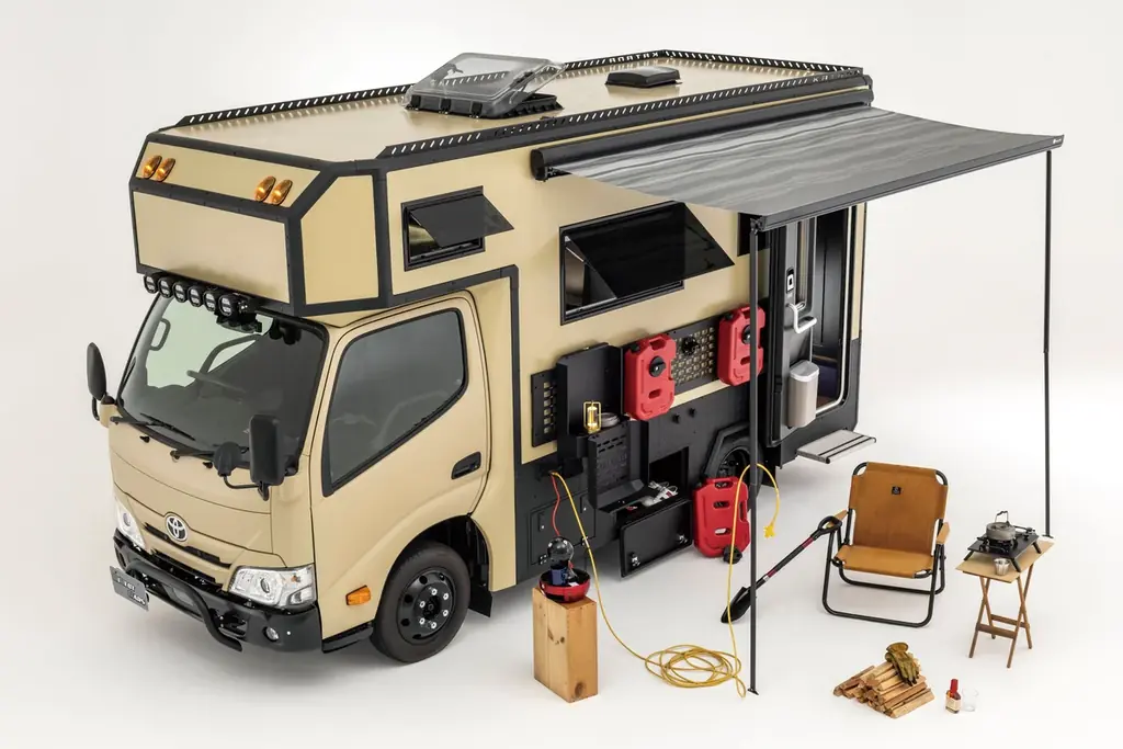 走行面では4WDと3000ディーゼルエンジンを組み合わせ、力強い走破性を確保。ベース車にはトヨタ・カムロードを採用しており、オフロードや未舗装路を含む長距離・長期滞在の移動に耐える構成となっている。