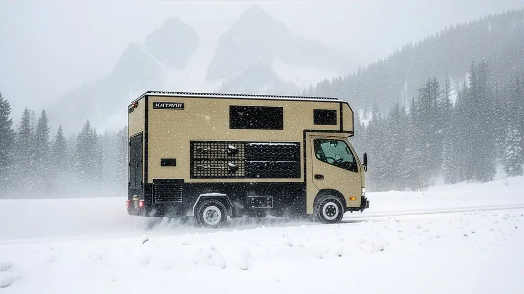 「Adventure in Desert Nomad」のテーマに照らし、KATANAは旅先を“住まい”と見立てるための装備を充実させている。家庭用エアコンや大容量リチウムイオンバッテリーなど、長期滞在に必要な要素を標準搭載することで、電源確保や快適性を高めている点が大きな特徴である。
