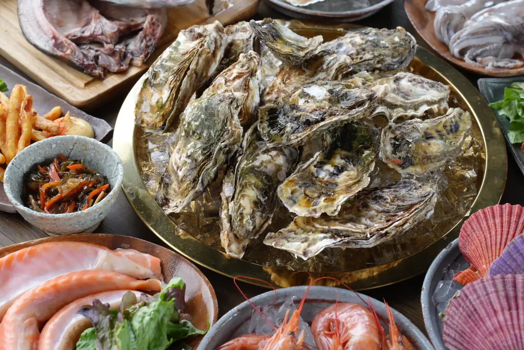 | 主な提供食材 | 牡蠣(産地:北海道・宮城・三重・岡山・広島・福岡等)、磨き牡蠣、緋扇貝、白ハマグリ、ホタテ、海鮮串、干物、イワシ明太、肉類、ソーセージ、おでん |