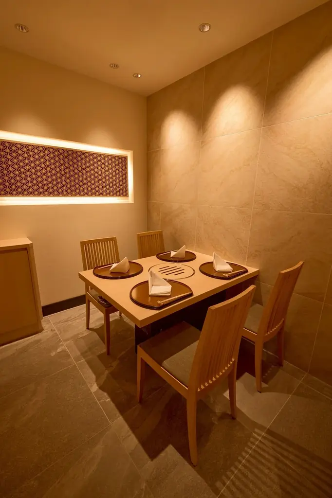 店舗内は全席完全個室で、当グループが誇る『焼師』によるフルアテンドサービスを採用する。焼師が一枚一枚を適切な状態で焼き上げることで、提供時の味わいを最大限に引き出す仕組みとなっている。