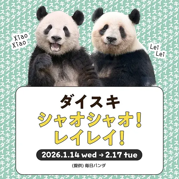 | イベント情報 | 「ダイスキ シャオシャオ!レイレイ!」/開催期間:2026年1月14日~2月17日/会場:松坂屋上野店/イベント詳細:https://www.matsuzakaya.co.jp/ueno/daisuki_xiaoxiaoleilei/ |