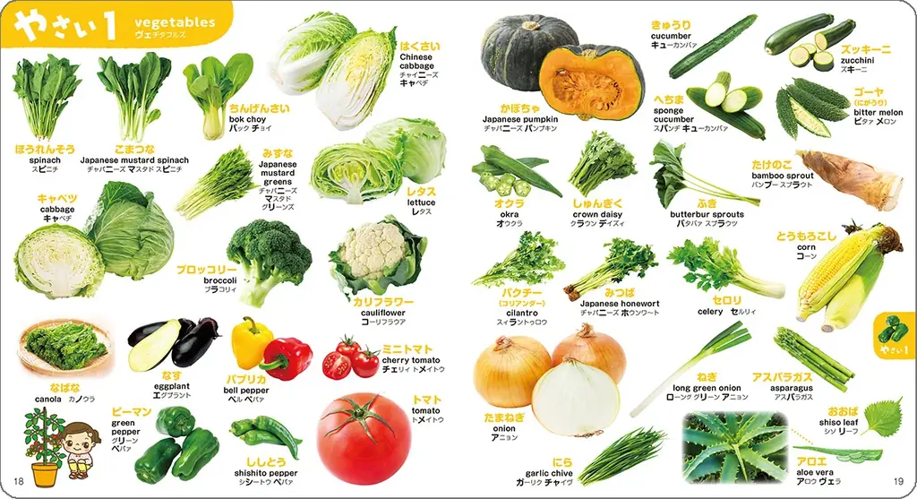 - 英単語とカナ発音を併記。日常の食べものを通じて英語語彙に触れる機会を設ける。