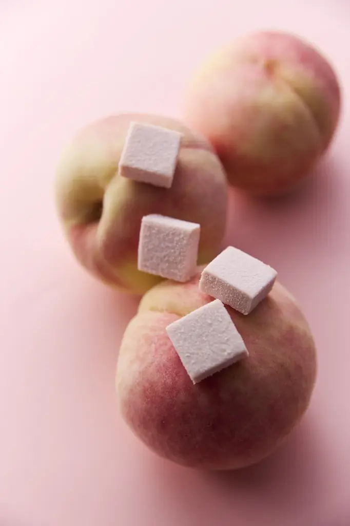 このピューレは自家製のホワイトチョコレートと合わせられ、なめらかな口どけとほっとする甘み、ふわりと広がる桃の香りがカカオの香りと溶け合うよう設計されています。食感は滑らかで、果実の自然な甘さが前面に出る仕上がりです。