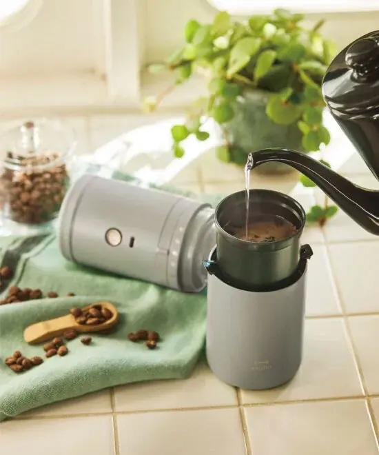 コーン式電動ミル、ドリッパー、真空タンブラーが一体化したパーソナルユースの電動コーヒーメーカーです。コードレスでコンパクトに設計されており、好みの挽き目で本格的な味わいが得られる点が特徴です。