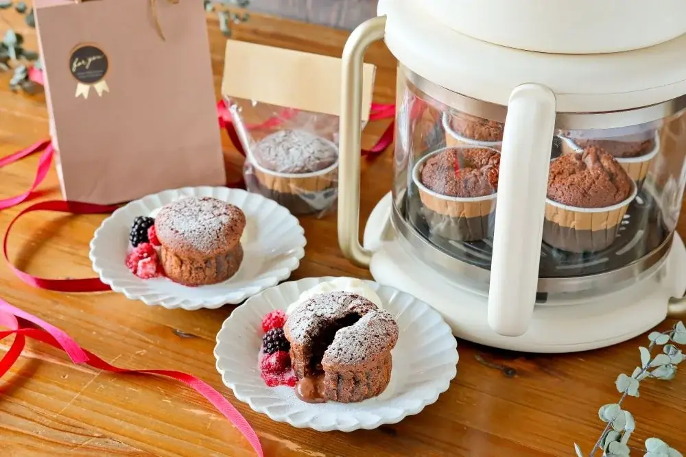 - 濃厚フォンダンショコラ(ガラスエアフライヤー使用) — とろける中心が特徴で、シンプルな材料と手順で仕上がるデザート。