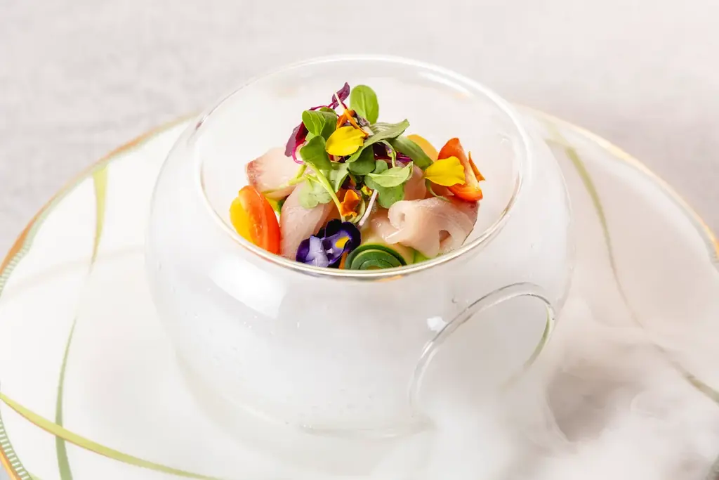 Twilightは比較的手頃な価格帯で季節感を楽しめるコースです。通年提供となり、料理は和の要素を織り込みながらも重たくならない構成となっています。