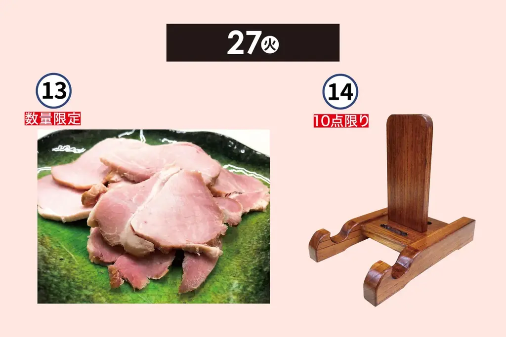 会期中は毎日数量限定の奉仕品・日替り品が用意されています。購入を検討する際は各日ごとの数量・価格・対象商品を確認してください。以下はプレスリリースに記載された日替り奉仕品の全件情報です。