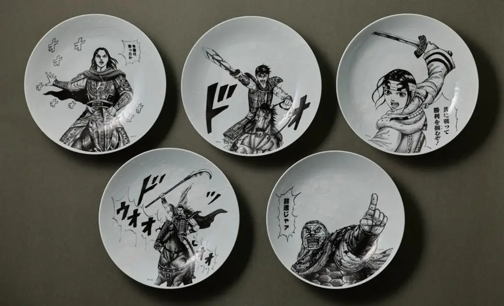 展示は巨大コマ装飾と額装複製原画を組み合わせたダイナミックな演出が特徴で、複製原画は34点展示されます。また、有田焼とのコラボ作品も特別展示され、人間国宝・故井上萬二氏の流れを受け継ぐ井上祐希氏による本コラボオリジナル大皿を展示します。