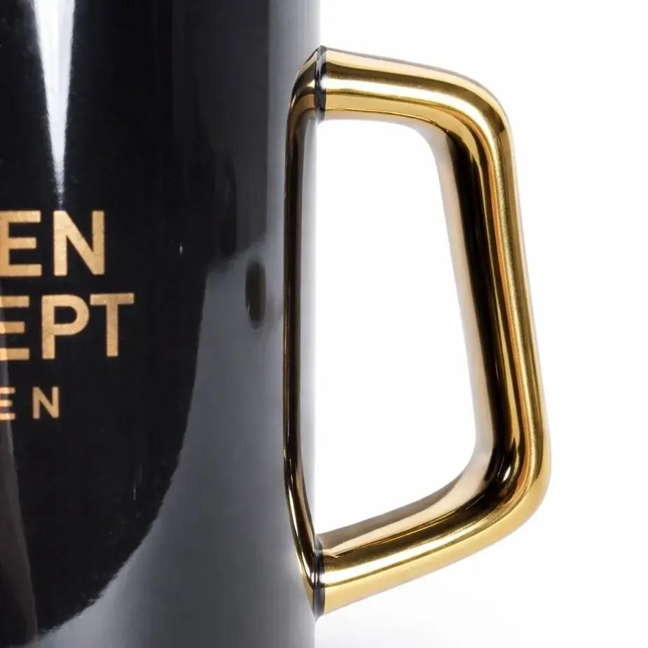 プレゼントされるマグカップはブランドロゴをあしらった限定仕様で、デザインはブラックを基調としゴールドのアクセントを加えた、ゴールデンコンセプトらしい上質感を意識した仕上がりです。外観だけでなく実用性にも配慮されており、日常使いに適した仕様となっています。