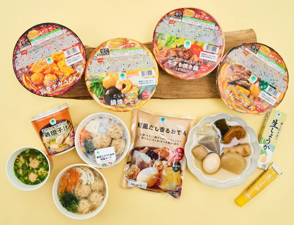 | 商品例(価格) | だしを味わう鍋焼うどん 499円(税込538円)、牛肉の旨みあふれるカレーうどん 554円(税込598円)、濃厚な味噌仕立て鶏団子汁 239円(税込258円)等(表中に詳細あり) |