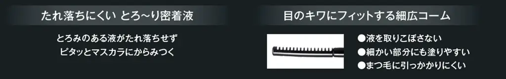 「号泣しても落ちにくい」を実現するために目もとにピタっと密着する耐久リキッド設計が採用され、号泣やこすり、皮脂に対してにじみにくい処方を目標に開発されました。