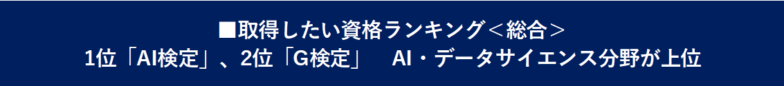 | 取得したい資格(総合) 上位3 | 1位 AI検定 117点 2位 G検定 115点 3位 中小企業診断士 104点 |