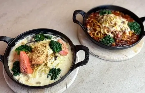 提供されるパスタは2種類で、どちらも生パスタの「リングイネ」を使用し、熱々の鉄鍋で仕上げて提供されます。もちもちとした食感とソースの絡みが良いのが特徴です。