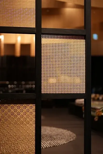 創業以来扱ってきた竹素材を背景に持つ、編みの表情を活かした内装用テクスチャです。伝統的な編みの美しさを保ちながら現代の商空間に適合させるための防炎処理と仕上げを施しています。