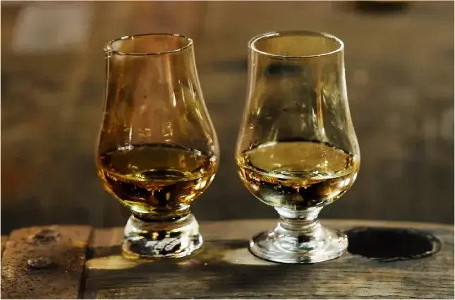 - ストレート:テイスティンググラスやブランデーグラス、ワイングラスで、手の温もりでゆっくりと香りを開かせる。グラスを温めてから注ぐと香りが立ちやすくなる。