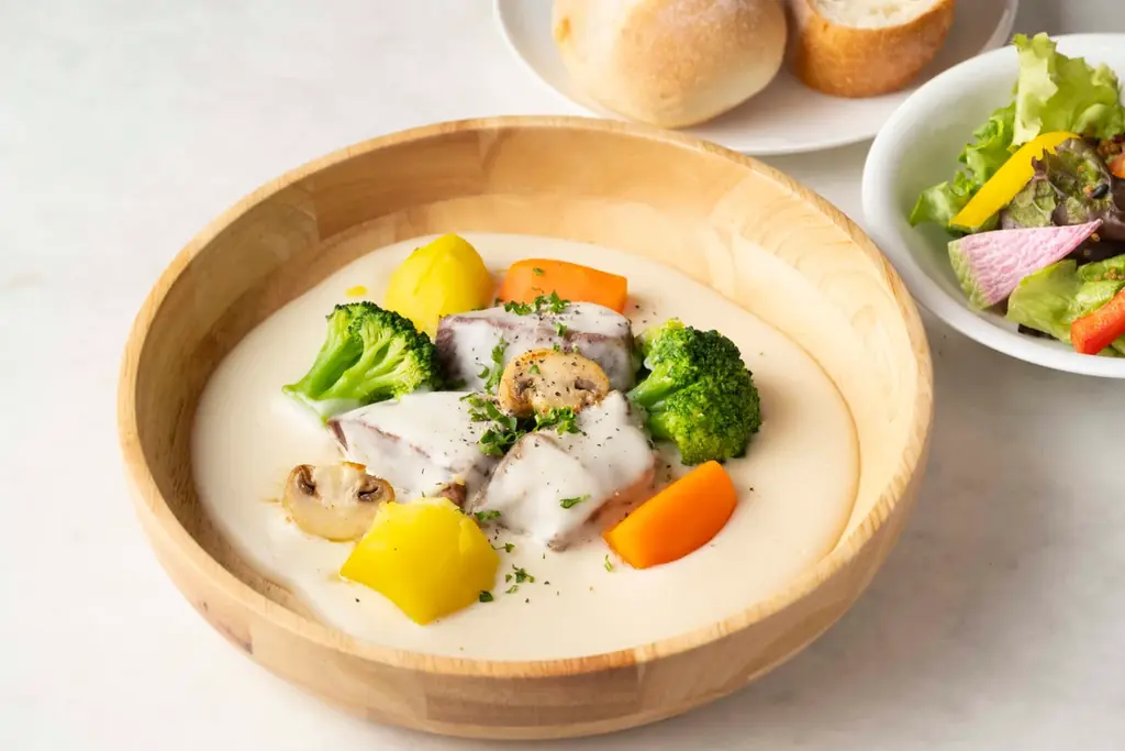 - 2月22日(日)~2月28日(土):やまゆりポークとインカのめざめのホワイトシチュー(ライスまたはパン付) 1,980円(税込)