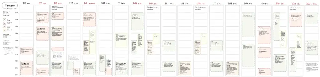 | 開館時間 | 10:00–20:00(2/6〜2/22)、最終日2/23は〜18:00。3F延長期間は10:00–18:00(木・金は20:00まで)。 |