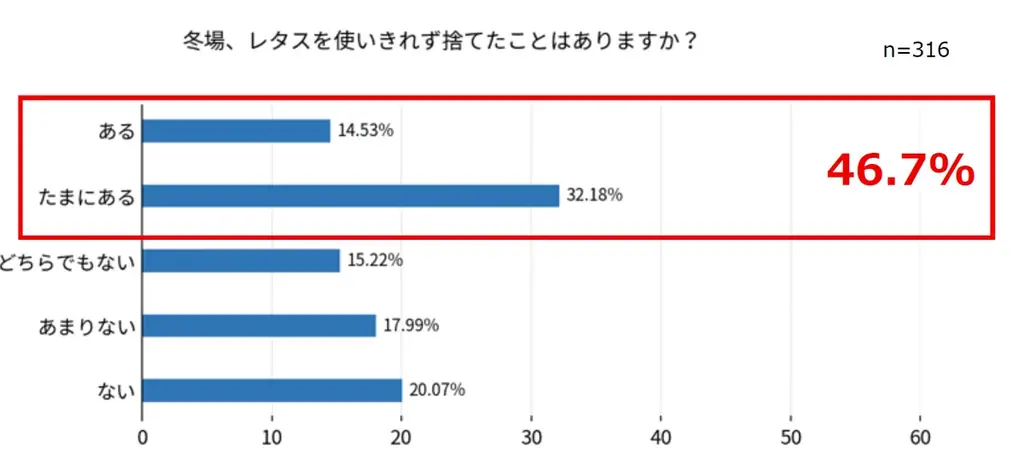 | 冬にレタスを使い切れず捨てたことがある割合 | 46.7% |