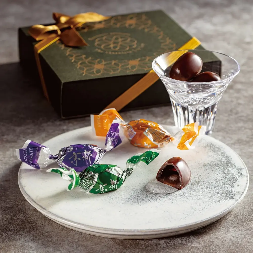 - 京都ボンボンアソート(15個/各種5個入り)1,998円。京都で造られたウイスキーや梅酒、清酒を使用した大人向けボンボン。