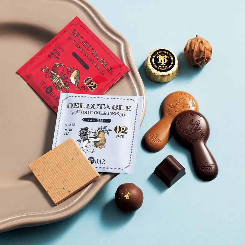 - ティーバー(20個入り)1,782円。紅茶のガナッシュ入りミニトリュフやティーバッグ風チョコを詰め合わせ。