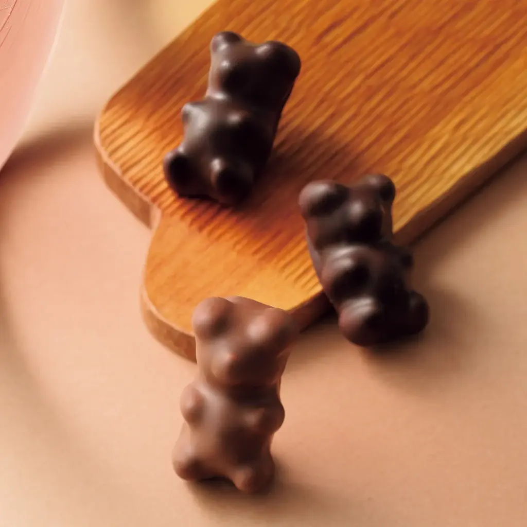 - ギモーヴベア(6個入り)2,700円。自社でカカオの仕入れから加工まで行うフランス・ノルマンディーの老舗ブランドのギモーヴをチョコで包んだ商品。