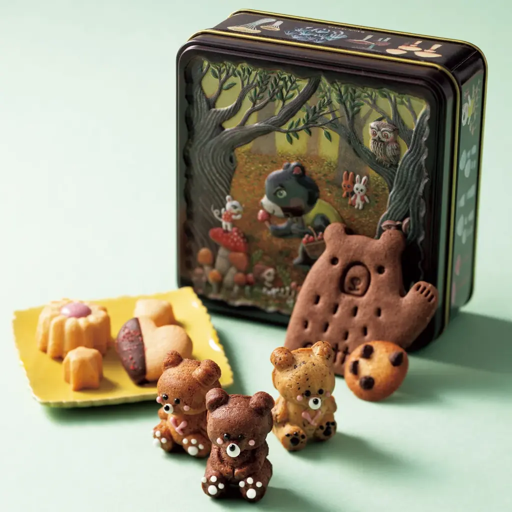 - BearCookie缶(32個入り)3,240円。くまの形の手描き顔が特徴の手作りクッキー缶。