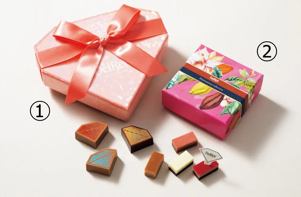 - 〈デルレイ〉ヤン・プルート氏:1月31日(土)10:00〜13:00に来場。販売商品は①ダイヤモンドコレクションBOX(6個入り)3,996円、②ハーモニアス(8個入り)2,160円。