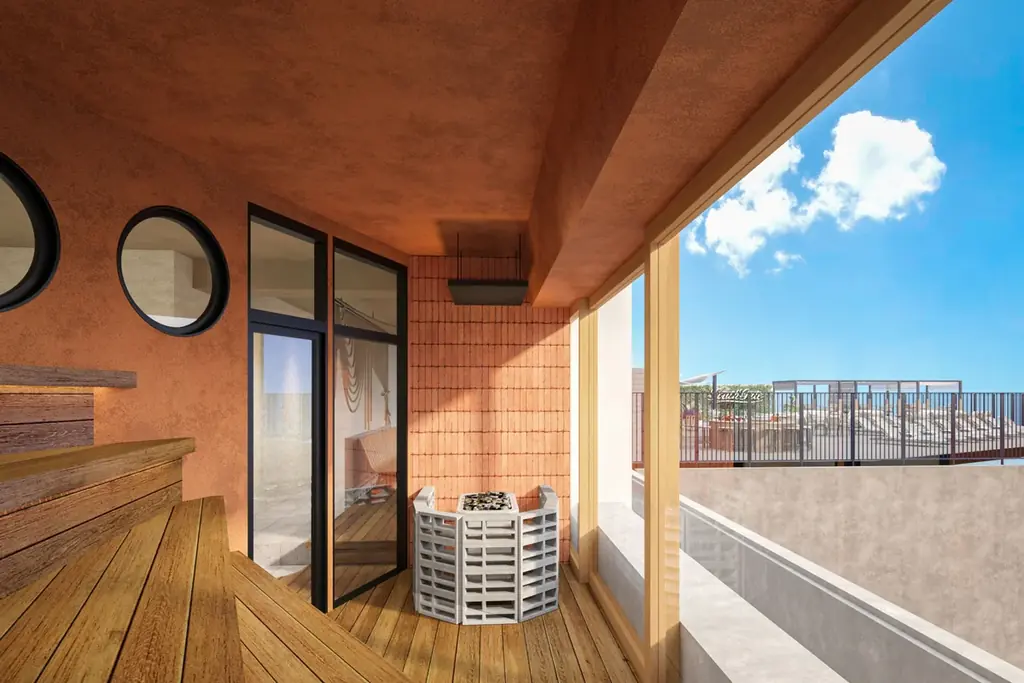 本ホテルはカップル、ファミリー、グループ、ワーケーションや長期滞在など多様な滞在スタイルに対応する設計です。客室には洗濯機付き、キッチン付き、専用サウナ付きといった種類が用意され、宿泊日数や人数に応じて選べる構成になっています。