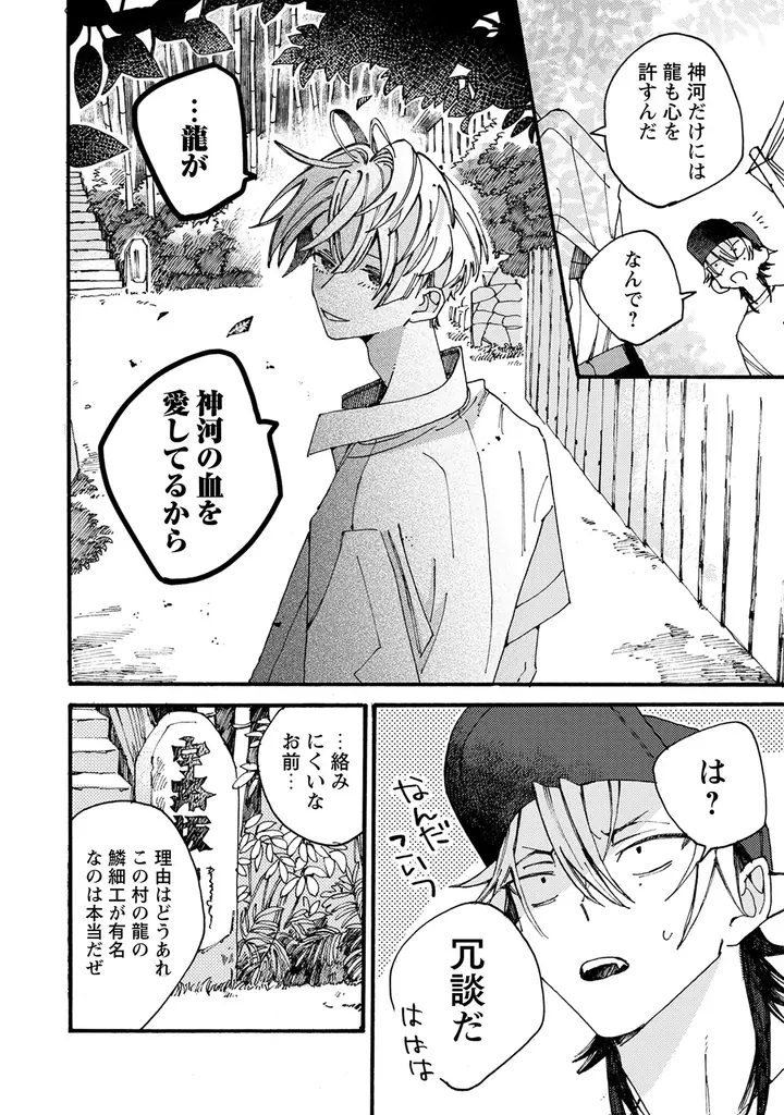 村で出会った少年・神河仁は、白水が真心の父であり、半年前に亡くなっていたと告げます。さらに白水は貴重な龍を唯一手懐けられる「神河家」の跡取りであったことが明かされ、二人の少年は“同じ父”を持ちながらも異なる境遇を背負うことになります。本作はその出会いがもたらす未来を描く構成です。