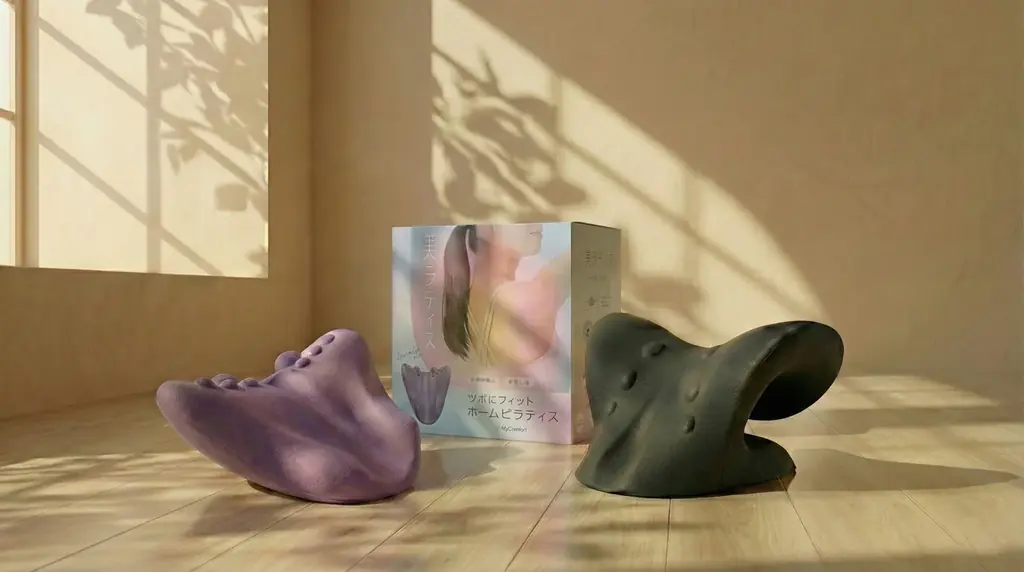 “ほぐす・伸ばす・鍛える”を日常に取り入れやすい設計の“ながらケア”アイテムです。身体のラインに沿いやすいカーブや複数の突起が全身のさまざまな部位を心地よく刺激し、一日たった5分寝ころぶだけで気になるポイントにフィットするラクケア構造を持ちます。自宅でのリラックスタイムやテレビを見ながら、作業の合間に使える設計です。 - ネックリラックスピロー(税込3,980円)