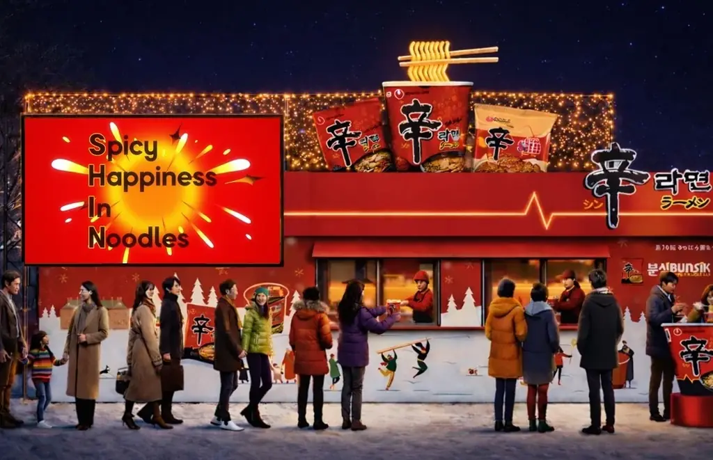 辛ラーメンは「辛さ」と「旨味スープ」を特徴とし、袋麺・カップ麺・汁なしタイプなど多様なラインナップを揃えています。ブランドキャッチコピーは「Spicy Happiness In Noodles」です。