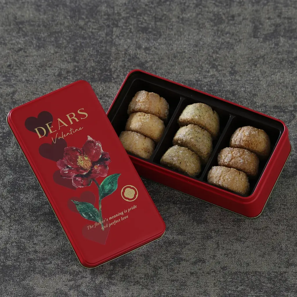 | 缶デザイン | 深紅の缶にツバキの花をあしらったバレンタイン限定パッケージ |
