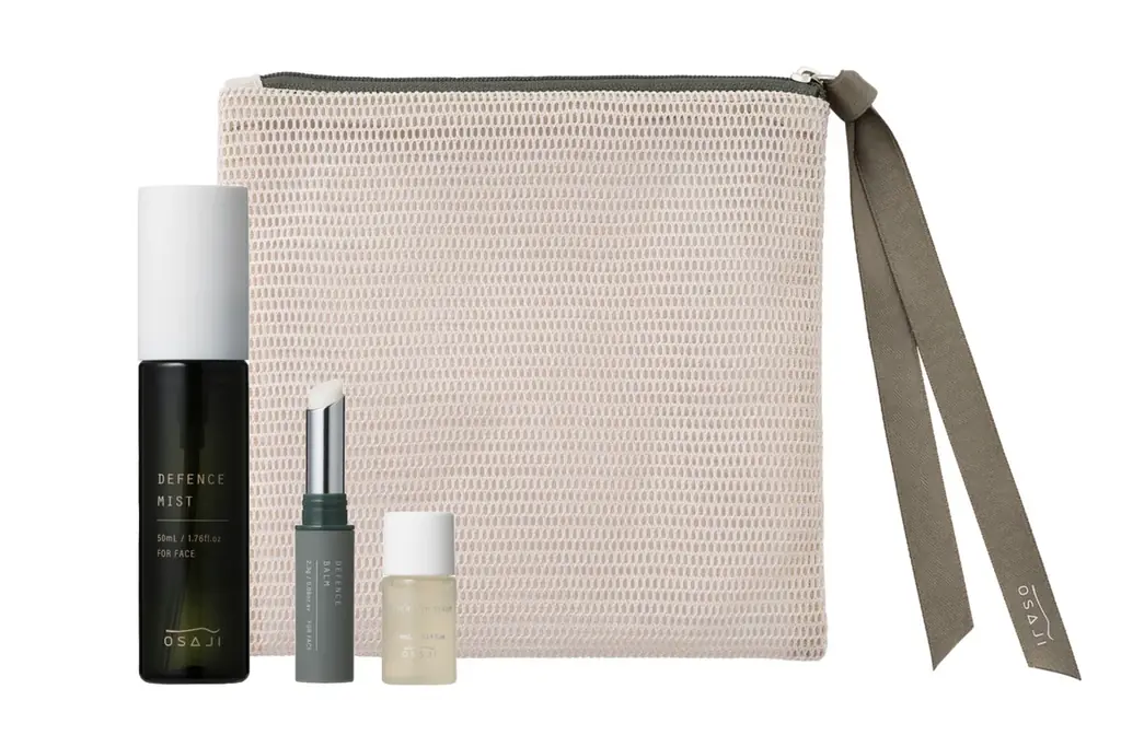 「オサジ ディフェンス シリーズ セット 2026」は、保護と保湿を両立する2つのディフェンスアイテムに加え、肌のバリアを整える美容液と携帯に便利なメッシュポーチを同梱した限定セットです。セット価格は¥5,500(税込)で、数量限定販売となります。